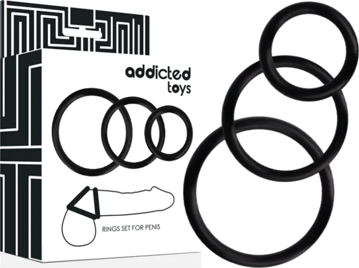 Met de ADDICTED TOYS set van drie rubberen penisringen kies je de perfecte maat voor intense ereaties. Ontdek nieuwe combinaties en geniet van maximale stimulatie.