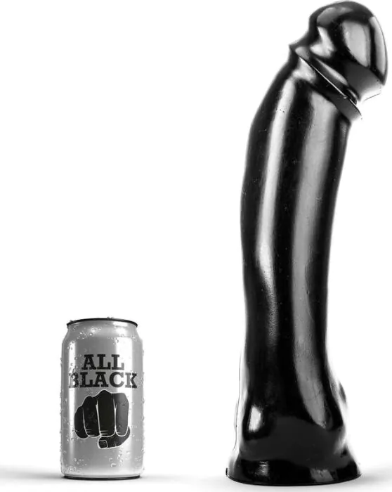 Dit is een lange, rechtlijnige dildo uit de ALL BLACK-lijn: een stevig, massief stuk speelgoed dat vooral het gevoel van diepte en vulvulling geeft. Met 33 cm insertabel lengte en ongeveer 7 cm doorsnede is het geen instapmodel — je voelt duidelijk dat het groot en vol is. De fabrikant geeft aan dat deze dildo deel uitmaakt van de ALL BLACK-reeks met ftalaatvrij, hypoallergeen materiaal en dat hij van PVC is gemaakt. Het is dus geschikt voor mensen die stevigere, minder flexibele toys willen.