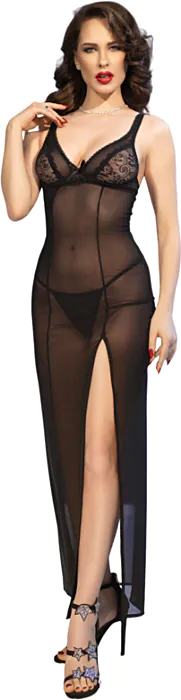 Voel je sensueel en elegant in de CR 4723 babydoll, gemaakt van een zacht en elastisch materiaal dat perfect aansluit op je lichaam. Deze lange nachtkleding accentueert je silhouet en biedt comfort voor speciale momenten. Het verstelbare rugstrik en de bijpassende tanga voegen een romantisch tintje toe.