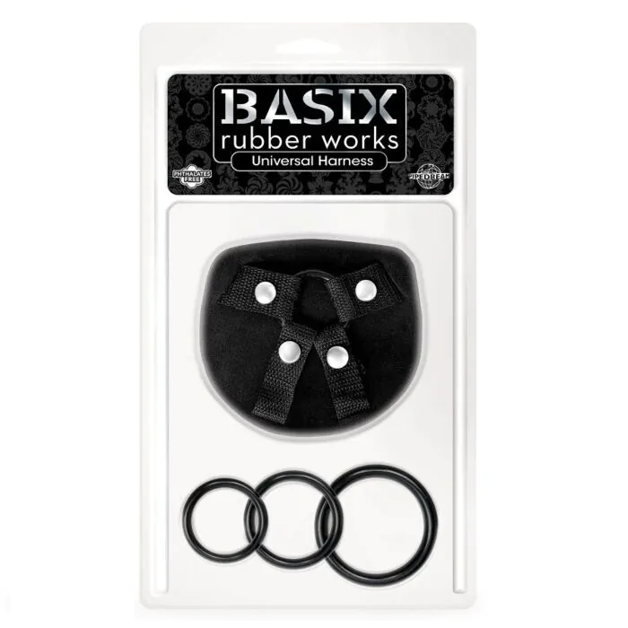 Met het Basix universele arnes ervaar je ondersteuning op maat dankzij de 3 anillas voor jouw dildo. Het is gemaakt van stevige maar comfortabele silicone, wat zorgt voor een zorgeloos gebruik. Dit arnes functioneert met de meeste masturbators in de Basix Rubber Works-collectie, waardoor je je opties kunt uitbreiden en variëren.