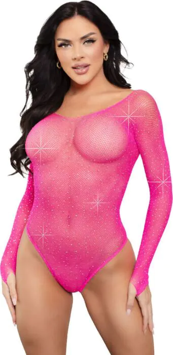 Dit body van Leg Avenue biedt een gedurfde en sensuele uitstraling met zijn lange mouwen en schitterende diamanten van imitatie. Gemaakt van 92% nylon en 8% elastaan, voelt het zacht aan op de huid en geeft het een comfortabele pasvorm. De bijpassende broek met drukknopen in het kruis zorgt voor praktische toegankelijkheid zonder in te boeten op stijl.
