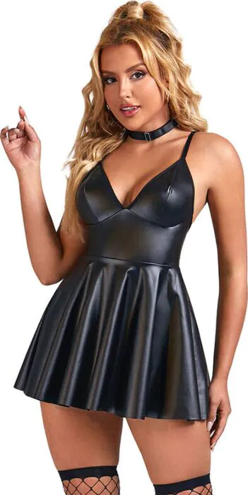 Dit sexy camisón biedt een gedurfde uitstraling met een luxe PU-leerafwerking die de sensualiteit benadrukt. Gemaakt van 95% polyester en 5% elastaan, zorgt het voor een comfortabele en flexibele pasvorm die mooi aansluit op je lichaam.