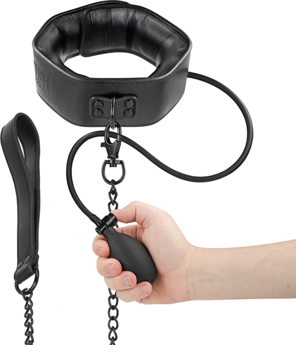 Intensifieer je bondage-ervaring met deze opblaasbare halsband van FETISH SUBMISSIVE. Ideaal voor degenen die controle en overgave willen verkennen. gemaakt van hoogwaardig veganistisch leer.