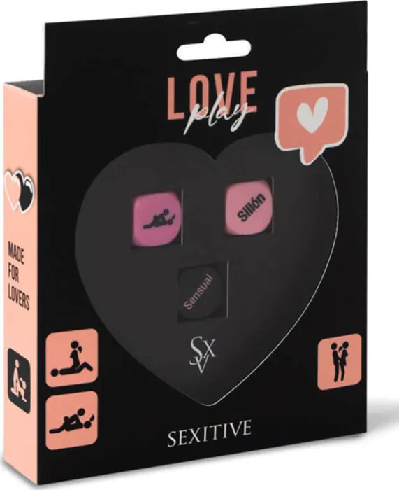 Love Play van SEXITIVE is een set van drie seksspeelgoed-dobbelstenen die intensiteit, posities en plekken combineert. Makkelijk in gebruik, leuk voor koppels die variatie en spontaniteit willen toevoegen aan het voorspel. Compact en direct inzetbaar — geschikt voor beginners en nieuwsgierige paren die zonder voorbereiding willen spelen. Let op: de illustraties beelden heteroseksuele stellen uit.