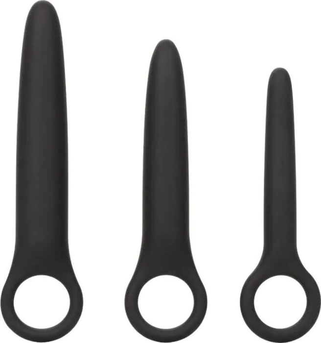 Dit is een set van drie naadloze dilatatoren van premium, hypoallergeen siliconen bedoeld om stap voor stap te wennen aan inbrengen en dilatatie. De sondes hebben een sensueel conische vorm en lopen in grootte op, waardoor je gecontroleerd en comfortabel kunt opbouwen. Elke dilator heeft een duurzame vingerlus voor betere controle tijdens het inbrengen en voor gerichte stimulatie. De lus is ook geschikt om te combineren met een mini bullet voor extra vibratie — let op: de mini bullet wordt niet meegeleverd.