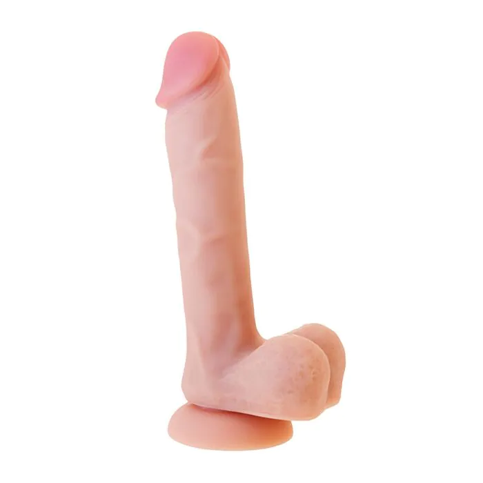 Dit is een realistische dildo van S Pleasures gemaakt met een dubbele laag 100% silicone. Je voelt een stevige kern met een zachte buitenlaag en gedetailleerde structuur: volumineuze glans, venetjes en een natuurlijk gevoel dat dichter bij huid aanleunt dan dunne single-layer opties. De zuignap onderaan maakt hem handig voor handsfree gebruik op gladde oppervlakken en hij is compatibel met harnassen, wat hem praktisch maakt als je variatie zoekt in positie en gedragen gebruik.