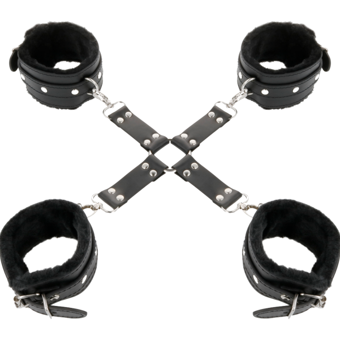 Ben je klaar om je onder te dompelen in een wereld van intense en opwindende sensaties? De zwarte leren enkel- en polsboeien van Darkness zijn de perfecte keuze voor degenen die hun erotische spel naar een hoger niveau willen tillen.