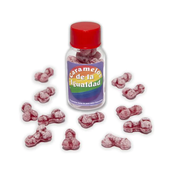 ¡Durft je speciale momenten zoeter te maken met onze Pot van 12 Gelijkheidspiemelsnoepjes! Met de vorm van een penis en een heerlijke aardbei-kersensmaak, zijn deze snoepjes van 25 gram elk perfect om van te genieten in goed gezelschap. Verras met een grappige en smakelijke traktatie!