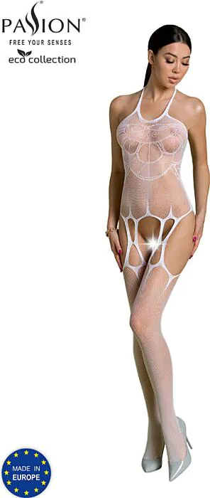 Ontwaak de passie op een duurzame manier met de Bodystocking Eco BS002 Wit uit de ECO-collectie van Passion!
