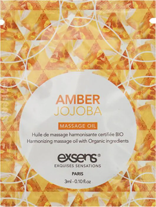 Kleine monodosis van verzorgende jojoba-massageolie met echte ambertjes in het flesje. Natuurlijke ingrediënten hydrateren de huid en geven een rustgevende aromatherapie. Handig om eerst uit te proberen of mee te nemen voor een korte, intieme massage. Niet geschikt als glijmiddel bij latex condooms of onbeschermd gebruik met siliconen toy’s.