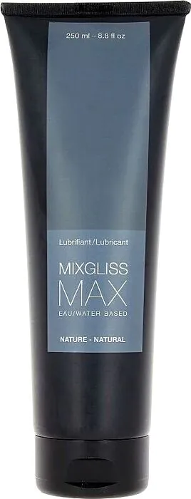 Pijnloze anale verwijding met de extreme formule van MIXGLISS MAX. Dit waterbasis glijmiddel garandeert een comfortabele en plezierige ervaring. Met een inhoud van 250 ml, is het eenvoudig aan te brengen en veilig te gebruiken met condooms.