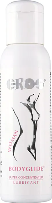 Bodyglide van EROS is een supergeconcentreerd siliconen glijmiddel in 250 ml-fles, ontworpen voor langdurig, soepel glijden. Geschikt voor gebruik met latex condooms en dermatologisch getest voor gebruik op huid en slijmvliezen. Kies dit product als je weinig wilt bijvloeien en een glad, niet-plakkerig resultaat wilt; gebruik andere producten bij siliconen seksspeeltjes.