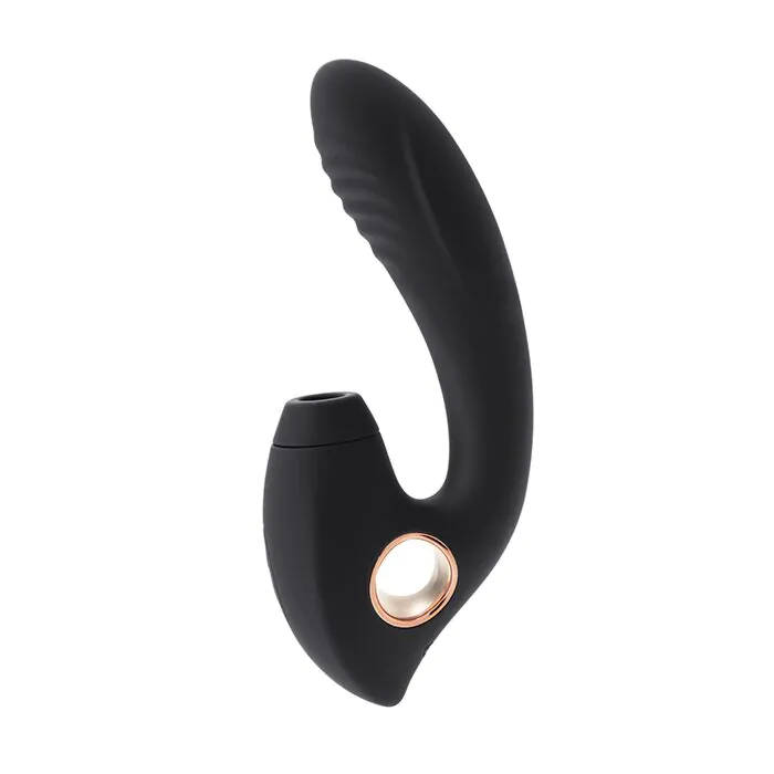 Vibrador y pulsador de doble estimulación pensado especialmente para masajear el punto G y el clítoris de manera simultánea. Tiene un diseño ergonómico, con un eje liso y acabado redondeado para una penetración fácil y la parte que estimula de manera externa con pulsaciones acaba en una suave boquilla adaptándose al clítoris. La boquilla posee un pulsador interno que, al activarlo, proporciona estridentes golpecitos que van directos al clítoris y crean un efecto succión al apoyarlo con la piel. La unión entre el eje y la parte externa es flexible, de tal manera que ayuda a adaptar de manera óptima el juguete a todo tipo de cuerpos. Además, añade un tipo de agarre que se acomoda en los dedos para direccionar mejor la estimulación. Está fabricado en silicona suave y agradable y un detalle en ABS de color bronce que le da un toque elegante y delicado. Posee dos motores totalmente independientes y controlables a través de dos botones diferenciados. La vibración del eje tiene un total de 3 intensidades y 7 patrones de vibraciones potentes, y el pulsador tiene hasta 10 modos de pulsación/efecto succión. Es recargable con cable USB (incluido), sumergible y muy fácil de limpiar. Es un vibrador ideal para la autoexploración y el autoplacer o para jugar en compañía y explorar nuevas sensaciones. También es totalmente apto para la penetración anal. Se recomienda el uso de lubricante a base de agua para mejorar la experiencia y hacerla más agradable. Características principales:Vibrador/pulsador de doble estimulación.Estimula de manera simultanea la zona G y el clítoris.Diseño ergonómico.Eje liso y acabado en redonda.De fácil penetración.Estimulador externo acabado en una boquilla que se adapta al clítoris.Boquilla con pulsador interno, crea un efecto succión.Flexible, se adapta muy bien a todos los cuerpos.Tiene un agarre para los dedos. Fabricado de silicona y ABS.Dos motores independientes.Dos botones de control.Vibración: 3 intensidades y 7 patrones.Pulsación: 10 modos.Recargable con cable USB (incluido).Sumergible.Fácil de limpiar.Para autoexploración y uso en compañía. Apto para la penetración anal.El uso de lubricante a base de agua ayuda a mejorar la experiencia.Si no lo vendes, cámbialo!A partir de la fecha de tu factura, si no vendes los productos de S Pleasures, podrás cambiarlos por cualquier otro producto en un plazo de 6 semanas.*La caja deberá estar en perfecto estado, se aplicará un recargo de 0.80? si está rota o dañada.*No se aceptará el cambio si la bolsa interior está abierta o manipulada.*El coste del transporte de la devolución irá a cargo del cliente.
