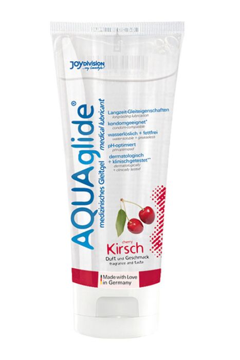 Dit is een waterbasis glijmiddel met kersensmaak van Joydivision Aquaglide, bedoeld voor wie een huidvriendelijke, niet-vette glijgel wil die ook goed werkt met seksspeeltjes en condooms. Wat dit product onderscheidt is de combinatie van een aangename smaak en een formule die lang blijft glijden zonder plakkerig te worden. Omdat het wateroplosbaar is, spoel je het makkelijk weg met water.