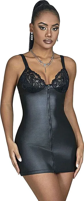 Verleidelijk zwart PU leren lingerie van SUBBLIME met een opvallende rits. Great voor wie durft te experimenteren en indruk te maken.