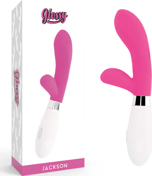 De GLOSSY Jackson Rabbit biedt krachtige stimulatie met zijn dubbele motor en 10 vibratiemodi. Ideaal voor solo- of koppelspel.