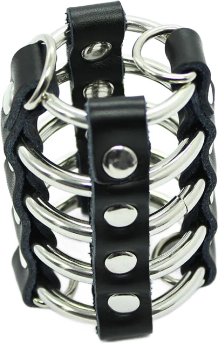 Ervaar de spanning van restrictie met de OHMAMA FETISH penis- en testikelkooi. Metalen ringen en verstelbare leren banden zorgen voor een veilige en comfortabele pasvorm.