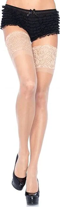 Voeg een vleugje elegantie toe aan je outfit met deze nude zelfklevende kousen van LEG AVENUE. Met een comfortabel ontwerp en brede kant zijn ze perfect voor elke gelegenheid.
