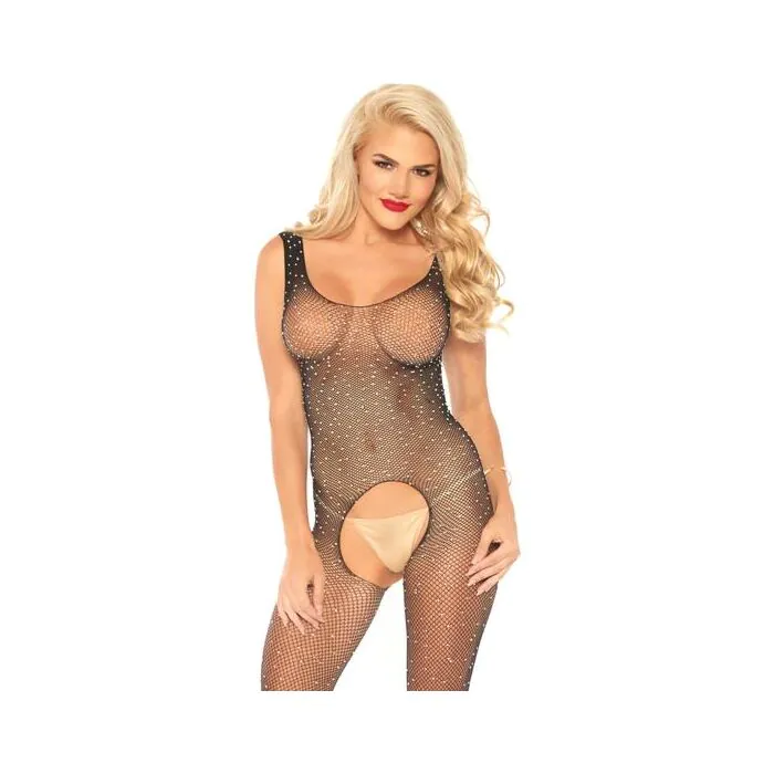 Body largo de red brillante con abertura - negro