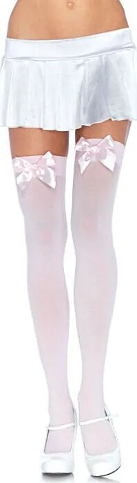 Voeg een vleugje flair toe aan je outfit met deze kniehoge nylon kousen van Leg Avenue. Geschikt voor elke gelegenheid en met een schattig strikdetail.