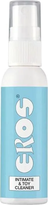 Deze EROS Intimate Toy Cleaner is een compacte spray die twee taken vervult: het verzorgt de uitwendige intieme zone en reinigt het oppervlak van je seksspeeltjes. De formule is alcoholvrij, dus zachter voor de huid en minder uitdrogend dan veel alcoholhoudende sprays. Door het kleine formaat neem je 'm makkelijk mee in je toilettas.