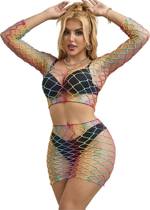 Dit set van twee delen in regenboogstijl biedt stijl en comfort. Great voor vrouwen die willen opvallen en zich sexy willen voelen.