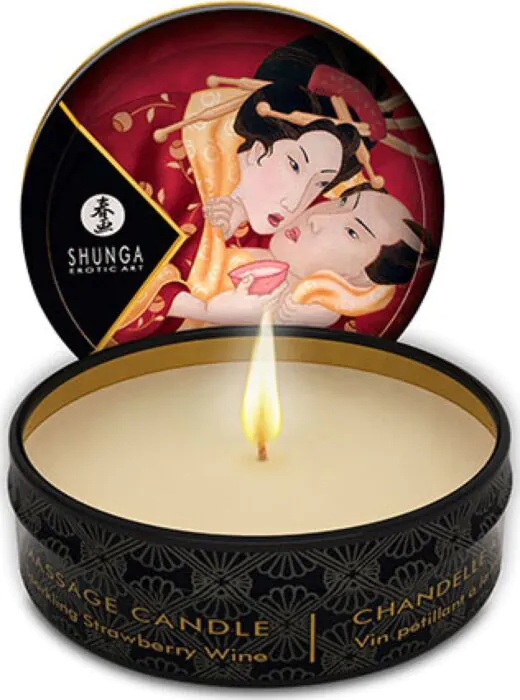 De SHUNGA Mini Caress kaars biedt een zachte massage en creëert een intieme, sensuele sfeer. Met een heerlijk aroma van aardbeien en cava, zorgt deze kaars voor een unieke ervaring. Na twintig minuten branden, giet je de warme was direct op de huid van je partner voor een luxe massage.
