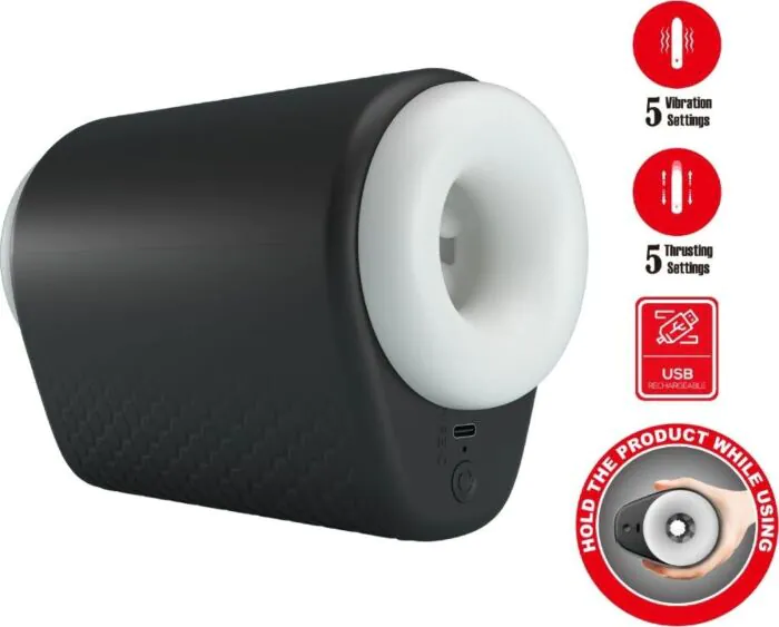 Een krachtige masturbator met 5 vibratiefuncties die variatie biedt. Het handmatige drukontwerp is een leuke toevoeging. Een zwakte is dat deze niet waterdicht is, dus voorzichtig zijn is belangrijk.