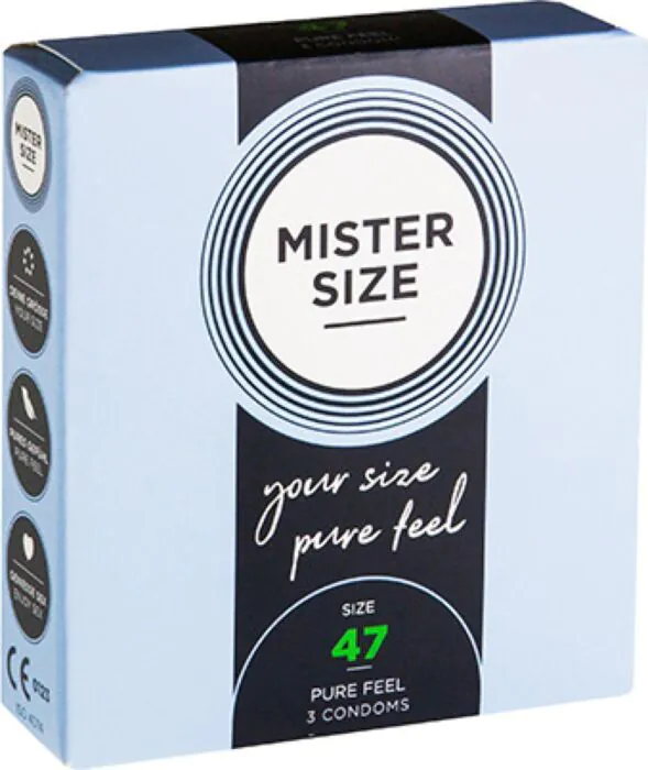 Een veilige en comfortabele pasvorm met de MISTER SIZE 47. Deze ultrafijne condooms van 0,05 mm bieden een unieke sensatie en zijn speciaal ontworpen voor slankere penissen. Gemaakt van natuurlijk latex, zorgen ze voor optimale veiligheid en een fijn gevoel tijdens de omgang.