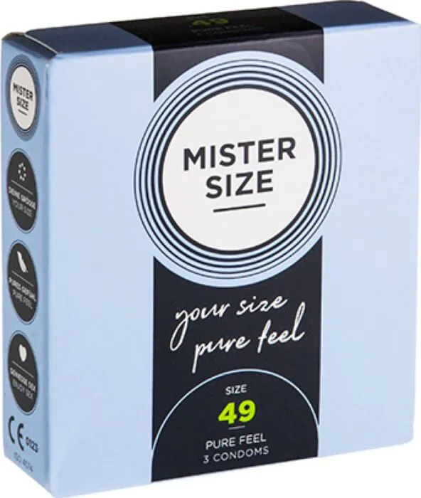 MISTER SIZE 49 biedt een uitstekende pasvorm voor wie een gevoelige ervaring zoekt. De ultrafijne latex zorgt voor een intens gevoel. Let op: deze condooms zijn niet geschikt voor bredere penissen.