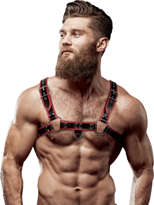 Versterk je mannelijke figuur met dit stijlvolle arnés van vegan leer, ontworpen om je zelfvertrouwen te vergroten. Het flexibele materiaal zorgt voor een perfecte pasvorm, terwijl de meerdere banden je schouders en borst op een unieke manier accentueren.