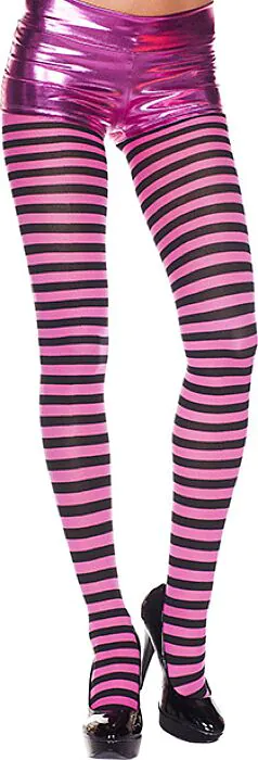 Een ondoorzichtige panty van Music Legs met contrasterende zwarte strepen op fuchsia achtergrond. Voor wie een gedurfde, modieuze touch wil zonder doorschijnendheid. Geschikt voor feestelijke outfits of om een basic jurk snel op te leuken. Een betaalbare keuze uit onze erotische webshop als je iets opvallends zoekt dat goed dekt.