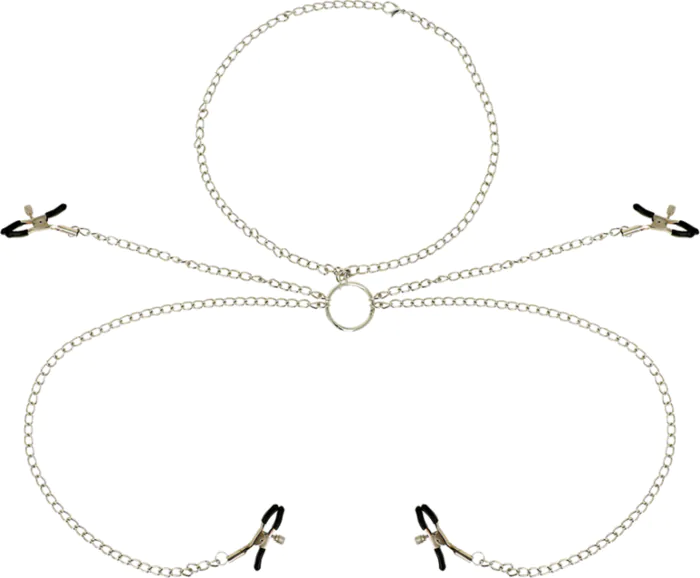 Intense stimulatie met de OHMAMA FETISH pinzas voor de tepels. Met 4 pinzas verbonden door kettingen, bieden deze een spannende ervaring voor zowel beginners als gevorderden in de BDSM-wereld. Gemaakt van metaal zonder nikkel, zijn ze veilig voor de huid en eenvoudig te reinigen.