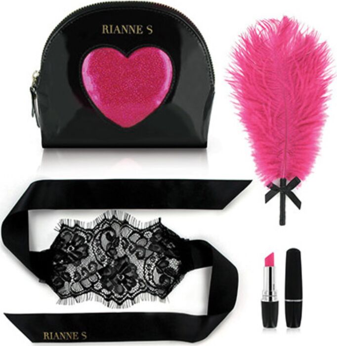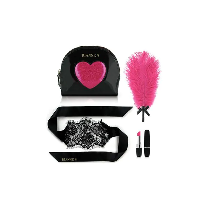 De Rianne S Kit d.Amour is een compacte seksspeeltje-set voor wie discreet wil experimenteren: een mini lippenstift‑vibrator, zachte roze veer en een zwarte blinddoek van kant en zijde. Geschikt voor koppels en solo gebruik dankzij het lage profiel en het draagbare formaat. Let op: de vibrator werkt op 1 AA‑batterij (niet inbegrepen), dus je hebt altijd een reservebatterij nodig.