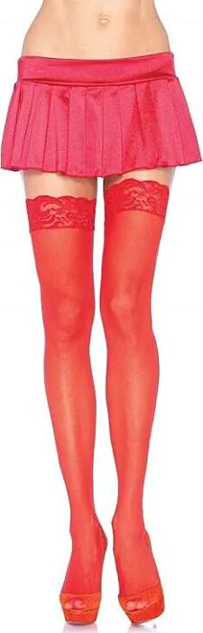 Voeg een vleugje elegantie toe aan je outfit met deze rode Leg Avenue medias. Geschikt voor elke gelegenheid, of je ze nu solo of met een kousenband draagt.