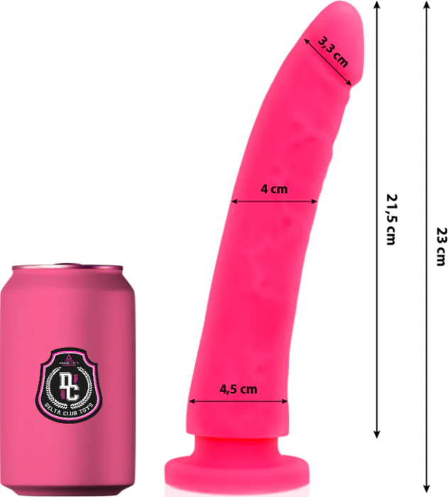 Geniet van de realistische sensatie van deze 23 cm lange dildo van DELTACLUB. Gemaakt van medische siliconen, veilig en gemakkelijk te reinigen. Ideaal voor solo- of koppelspeelgoed.