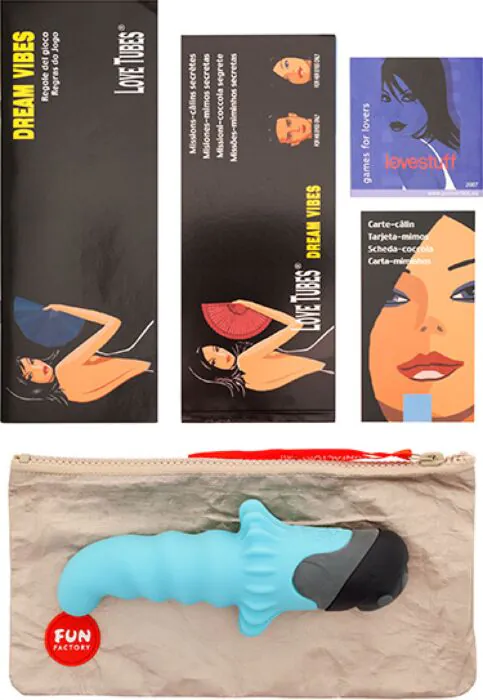 Geniet van een spannende avond met het Dream Vibes spel, dat een krachtige Stubby vibrador van Fun Factory combineert met een serie geheime missies. Dit spel stimuleert de zintuigen en biedt de kans om elkaar op een nieuwe, sensuele manier te leren kennen.