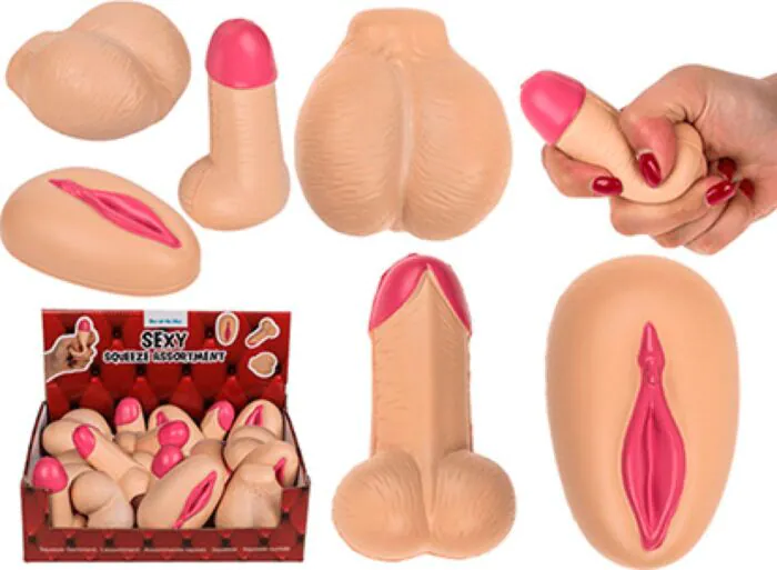 Dit is een vrolijk antistress-surtido van Out Of The Blue: 12 kleine, knijpbare figuurtjes in penissen, vulva's en testikels. Ik vertel je wat je in de winkel ook van me hoort: het zijn geen vibrators of intieme hulpmiddelen voor intern gebruik, maar lichte, compacte stressobjetjes met grappige, realistische details. Door het gereduceerde formaat zijn ze makkelijk uit te delen tijdens feestjes of om als klein cadeau weg te geven.