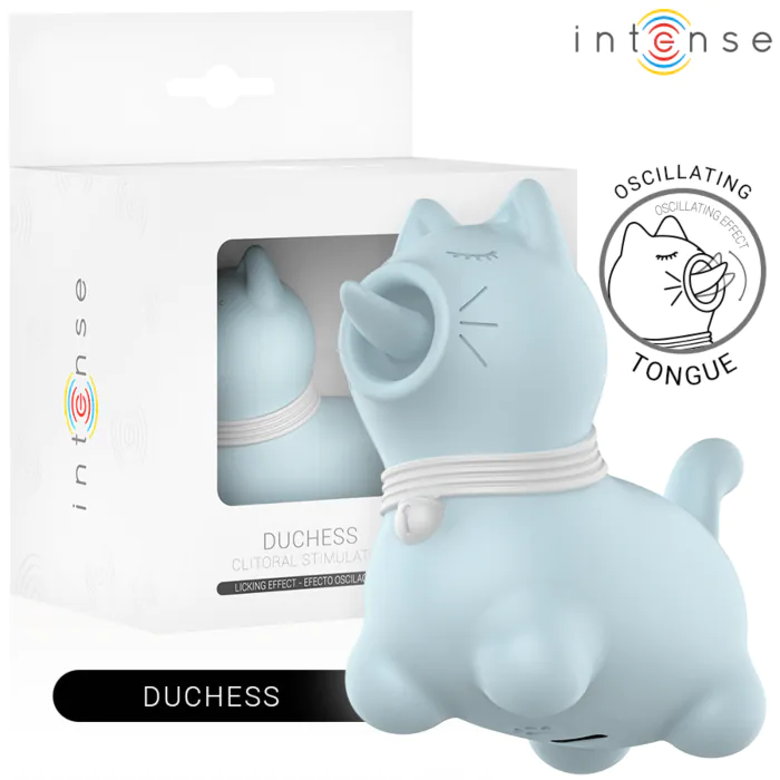 Ontdek de INTENSE FUN Duchess, een innovatief clitorisstimulator in een verfrissende blauwe kleur. Met zijn 360º roterende tongbeweging biedt hij een ongeëvenaarde sensatie die je zal doen verlangen naar meer. Perfect voor solo of samen, deze compacte en ergonomische stimulator is ontworpen voor een luxe ervaring.