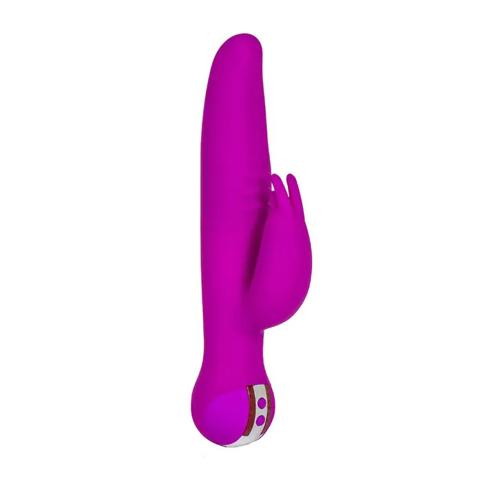 Poderoso vibrador estilo Rabbit de la línea de Vanity. Potente vibrador para estimulación del punto G, las paredes vaginales y una graciosa lengua que estimula el clítoris. La carga está completa en 4 horas. Controles de velocidad incrementales e intensos. Posee tres velocidades de vibración independientes. Luz de LED en la carga y encendidos. Es totalmente silencioso y resistente al agua. Garantía de un año.