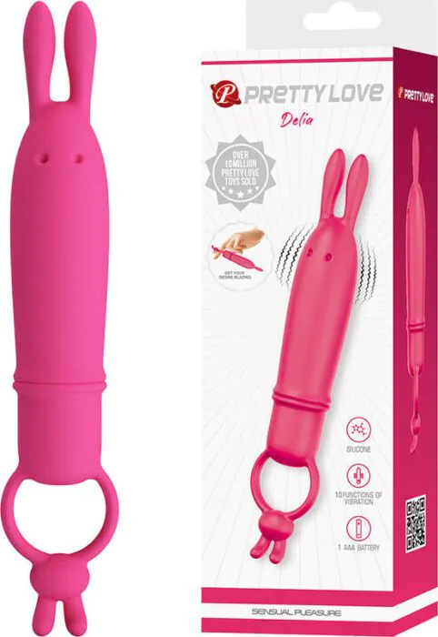 De Pretty Love Delia vibrador biedt krachtige dubbele stimulatie met zijn ontwerp en handige anillo voor controle. Perfect voor wie intens wil genieten.