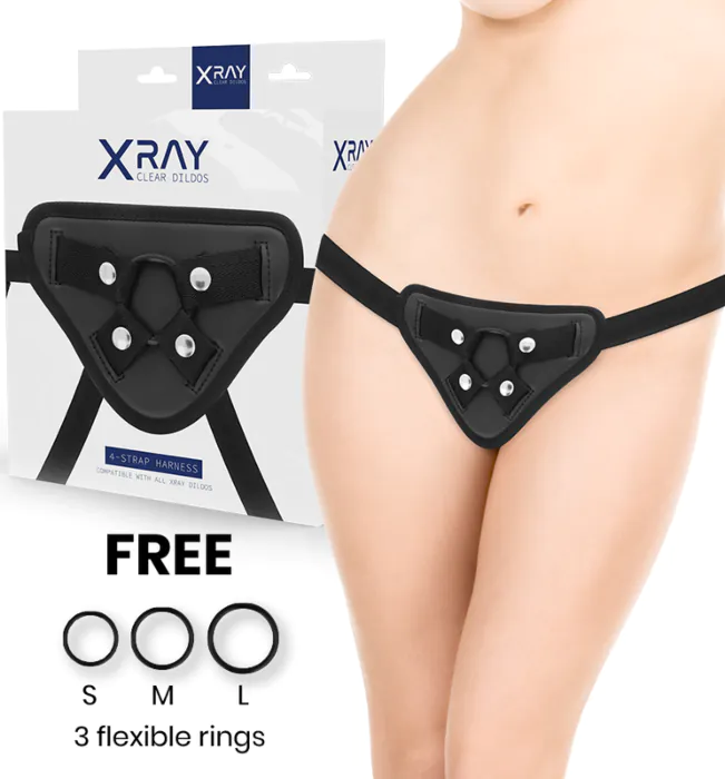 Een comfortabel en verstelbaar harnas van X RAY dat speciaal gemaakt is voor dildos uit dezelfde lijn. Dankzij de drie siliconenringen vind je gemakkelijk de juiste pasvorm, en de nylonriemen geven stevige maar draagbare steun. Geschikt voor wie wil experimenteren met een strap-on in onze erotische webshop, van beginners tot ervaren gebruikers.